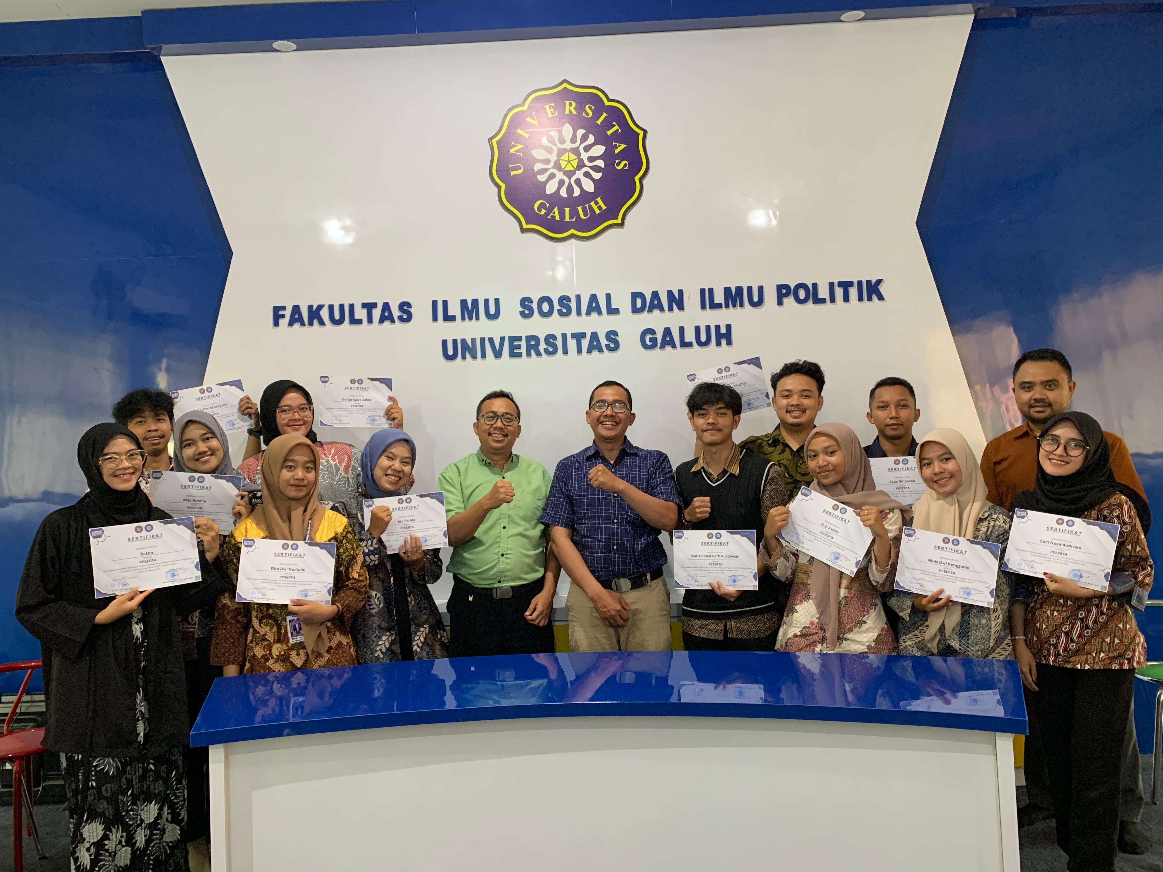 Ciamis, 17 Februari 2024 - Dalam rangka meningkatkan kemampuan mahasiswa dalam menulis karya ilmiah, Program Studi bekerjasama dengan Laboratorium Ilmu Pemerintahan Fakultas Ilmu Sosial dan Ilmu Politik Universitas Galuh mengadakan pelatihan jurnal ilmiah pada hari Sabtu, 17 Februari 2024. Kegiatan ini diikuti oleh 15 mahasiswa program studi ilmu pemerintahan. Pelatihan ini menghadirkan narasumber Dr. Amam, S.Pd.,M.Pd, seorang pakar di bidang penulisan ilmiah. Dr. Amam, S.Pd.,M.Pd., memaparkan materi tentang struktur dan format penulisan jurnal ilmiah, teknik sitasi dan daftar pustaka, serta tips dan trik untuk lolos review jurnal.